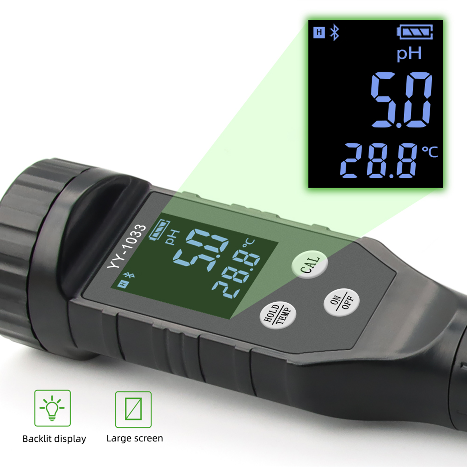 - Black LCD Screen – Clear, glare-free display of pH and temperature