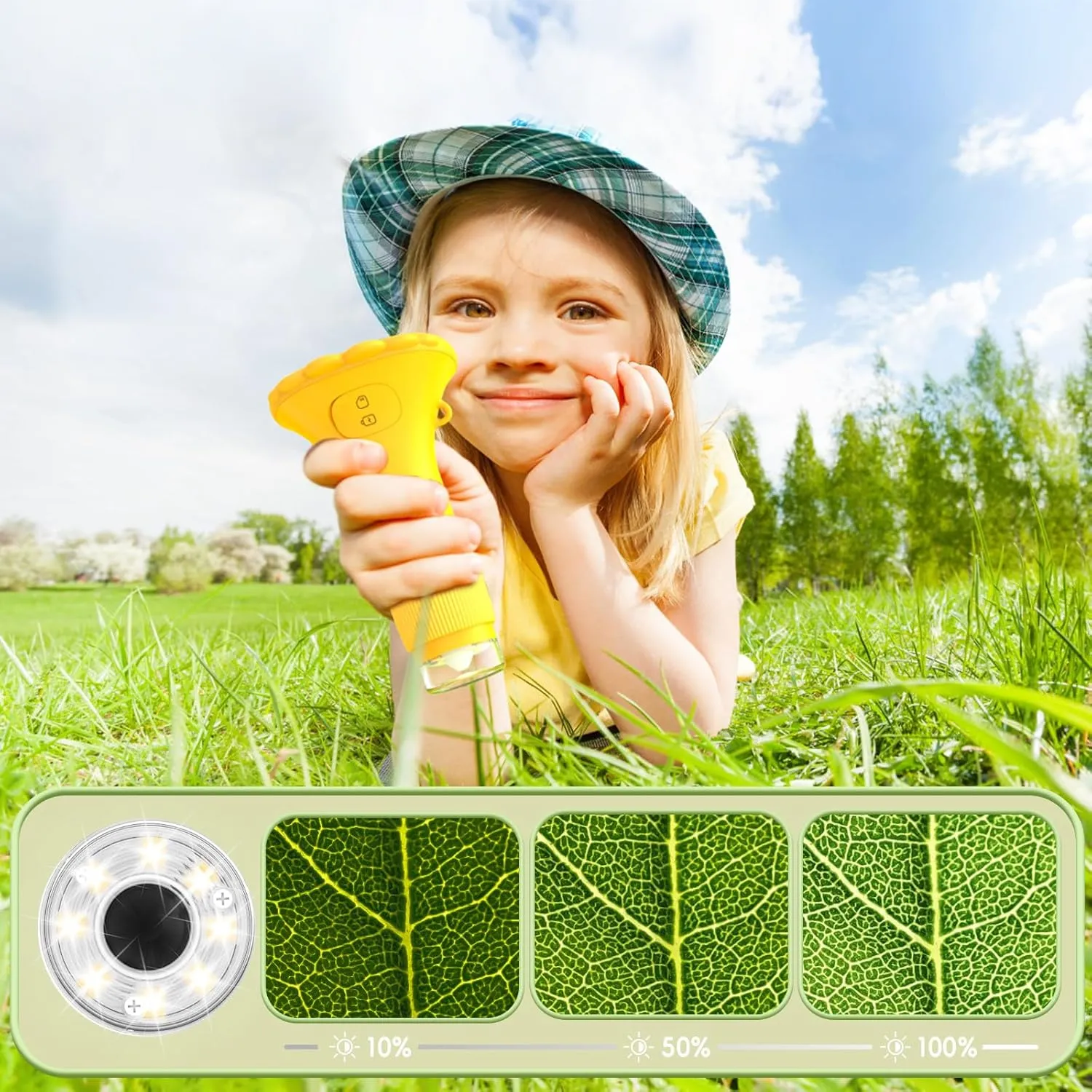 Whether indoors or in low-light conditions, the 8 adjustable LEDs provide soft, natural illumination, allowing children to clearly observe every tiny detail and enjoy a comfortable, focused scientific exploration experience.