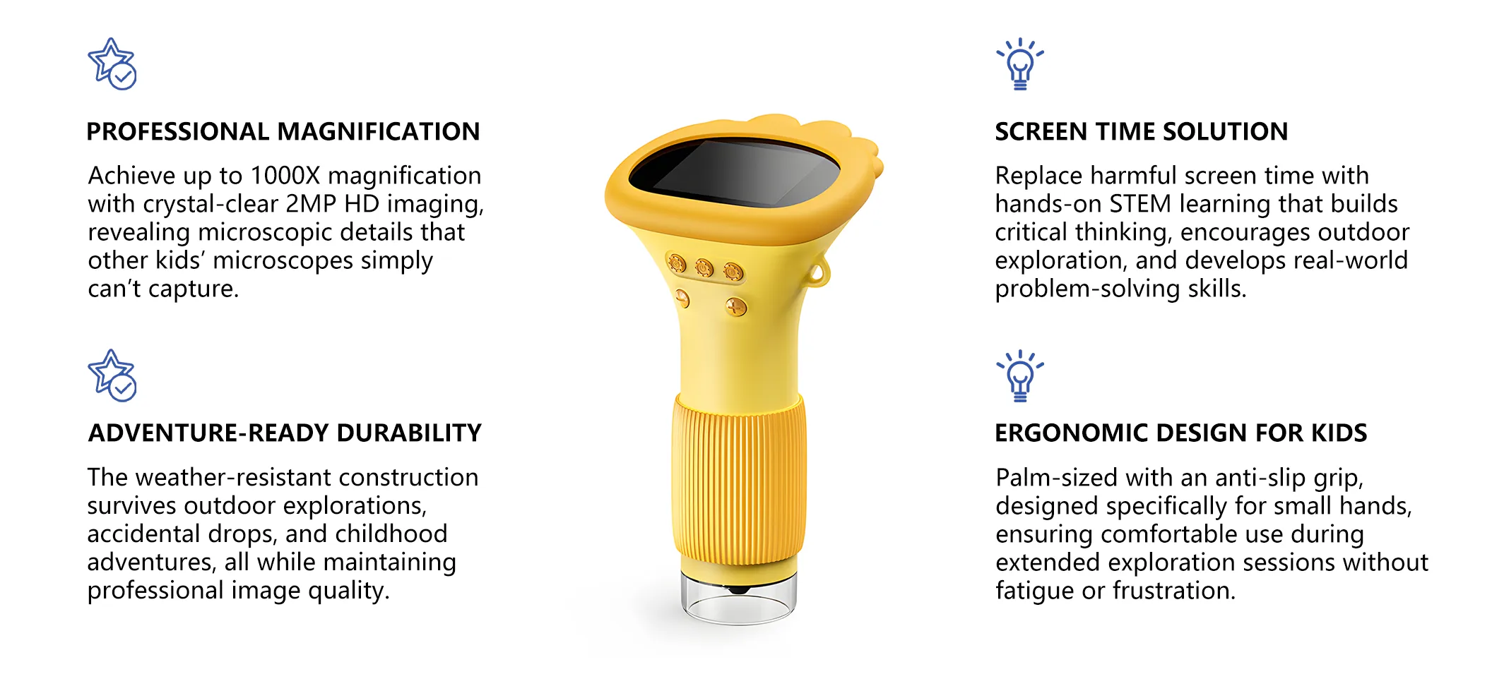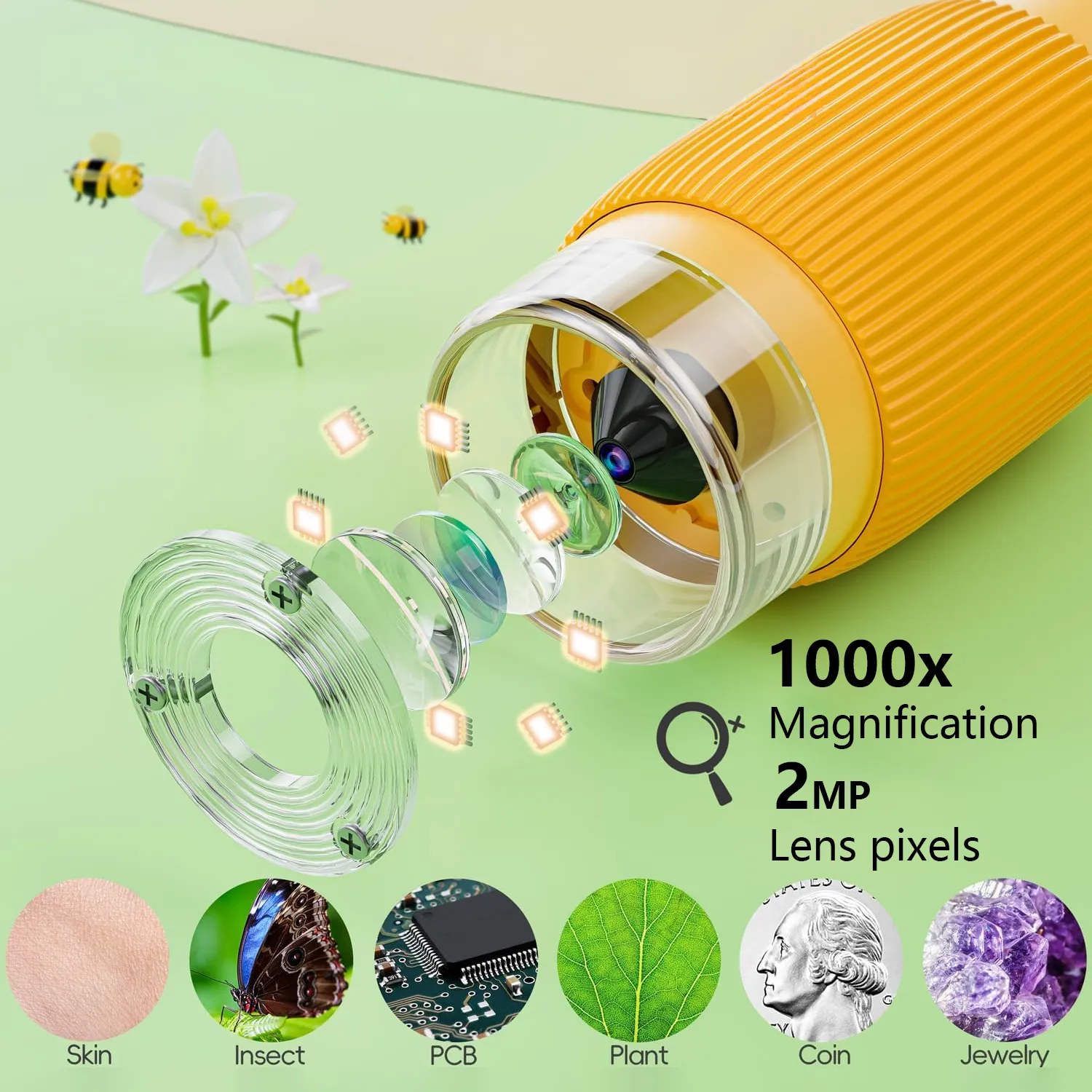 • 1000x magnification with 2MP resolution – Clearly reveals microscopic details, helping kids truly understand the hidden world.
