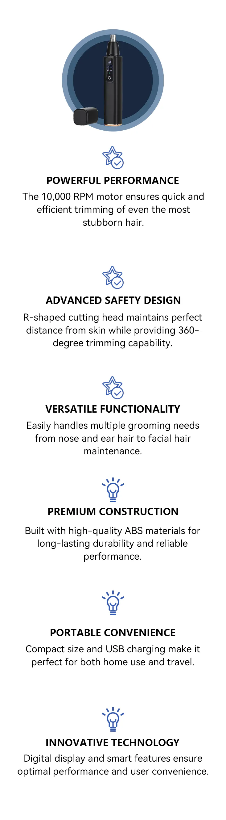 • Multi-Functional Use – Ideal for nose, ear, and facial hair grooming.