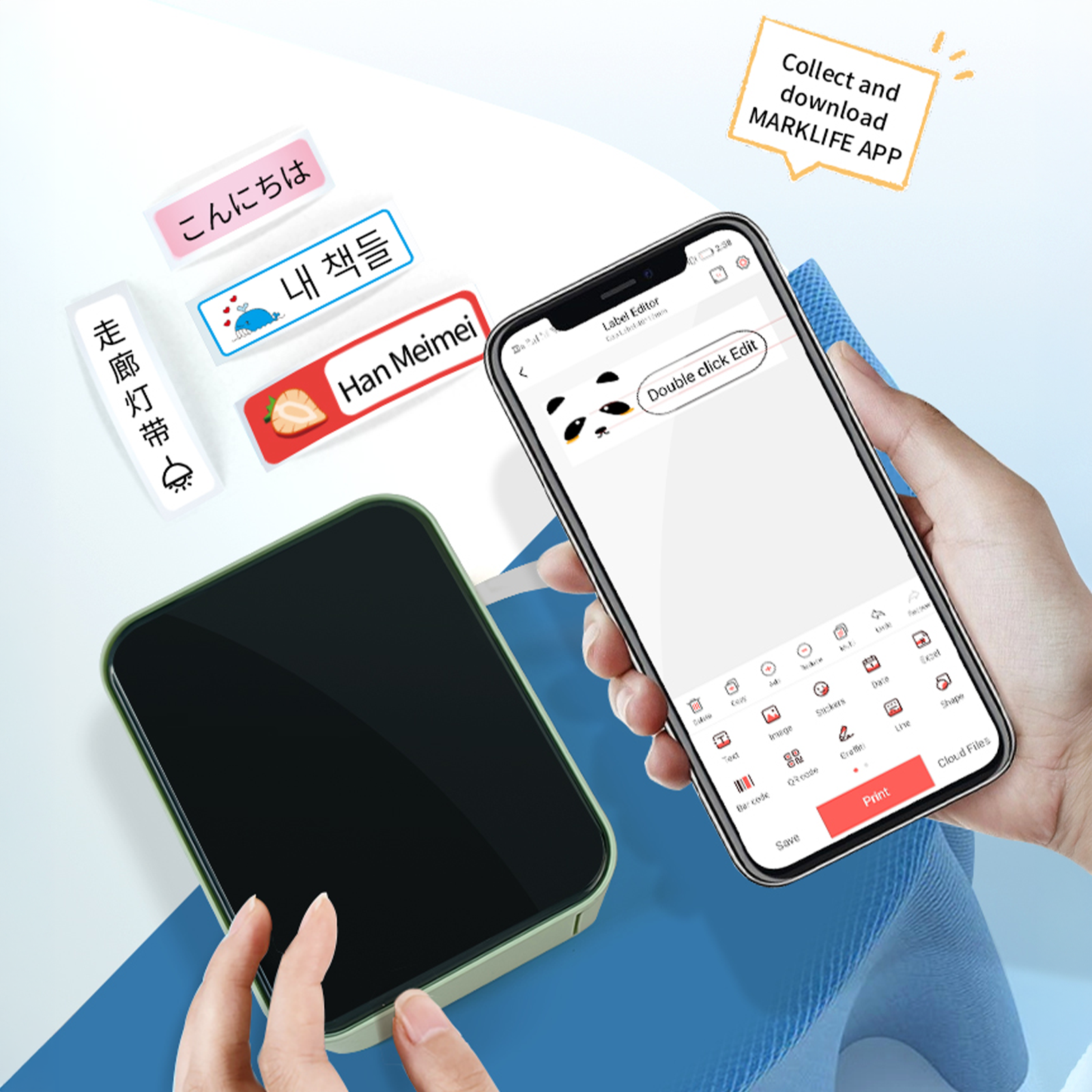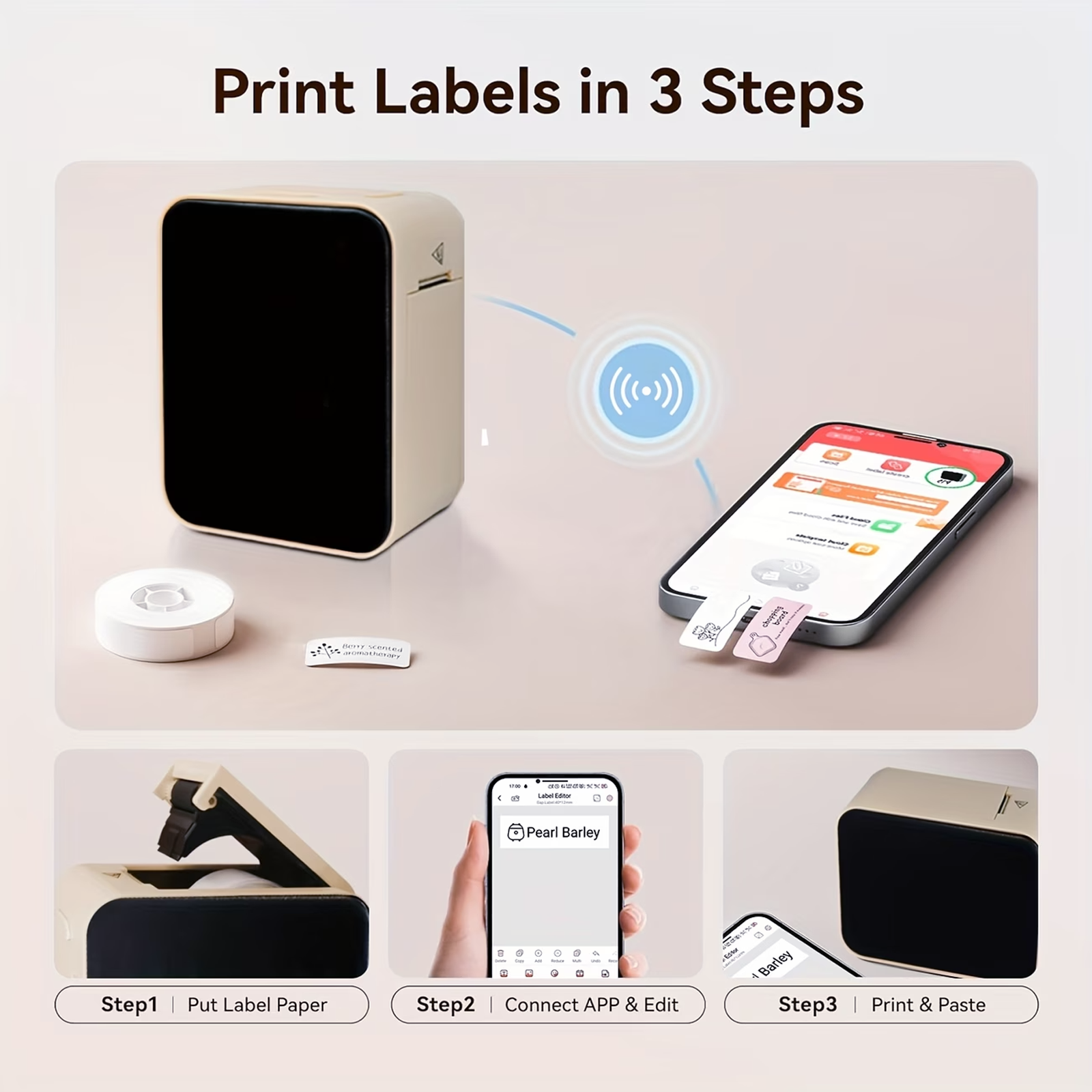- Three-Step Printing - Insert the label paper, edit your design in the app, then print and stick for quick and easy labeling.